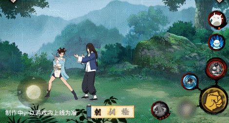 峨眉天天下蹲,随后跃至空中,同时手持峨眉刺不断旋转,持续攻击对手。