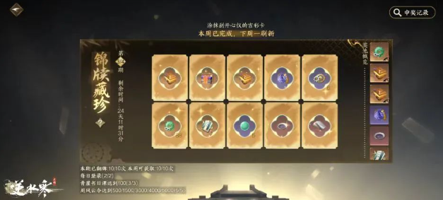 1、登录、完成日课、每周获得风云令,即可参与锦牍藏珍刮卡活动。