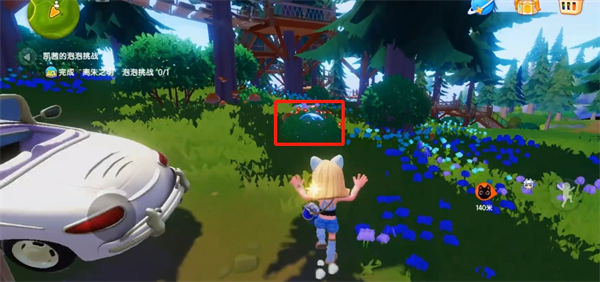 3、到达后,可以看到隐藏在灌木丛中的离朱之明泡泡,靠近后即可完成挑战。