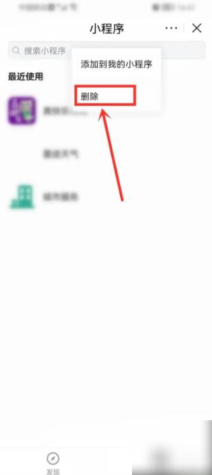 5、在弹出的窗口中选择“删除”,即可删除小程序。