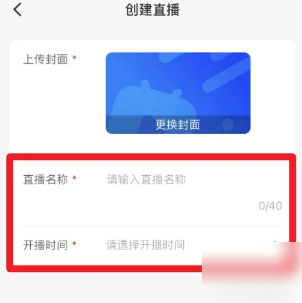 2、在【创建直播】页面中输入直播的名称和开播的时间。
