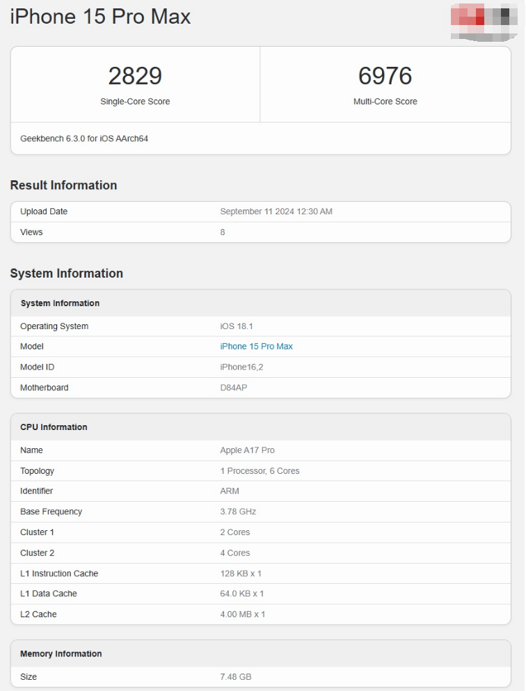 我们注意到,此次跑分的机型主板代号为 D94AP,与 iPhone 16(主板代号 D47AP)存在差异,同时代号和结合成绩来看,预计为 iPhone 16 Pro 系列机型。