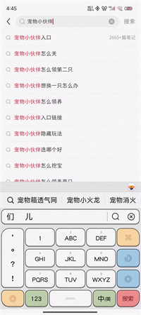 1、打开小红书的搜索框,在框中输入【宠物小伙伴】。
