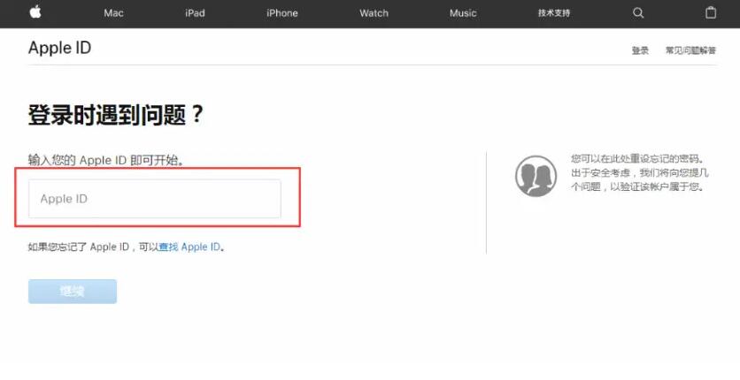 3、然后输入需要解锁的Apple ID,点击“继续”。