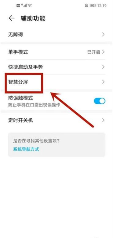 2、然后在辅助功能的页面中点击【智慧分屏】;