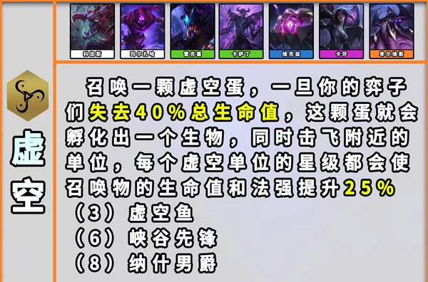 淡紫之海:从2-1开始,每个选秀和野怪回合后,棋盘上的一个格子就会被感染,如果格子在前两排,就会获得20%减伤,在后两排,则会获得20%的增伤。
