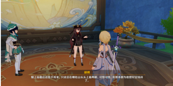 4、接着来到戏台上与胡桃、温迪触发剧情对话。