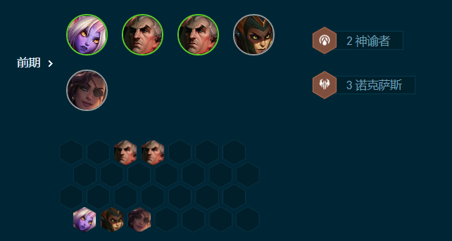 这套阵容是可走连胜也可走连败的,在装备较为优质的时候,可用其他的强势体系走连胜。2-1升4,2-5升5人口如3诺克萨斯/艾欧尼亚+对子,或2堡垒/格斗+后排对子C等等。走连败运营是最简单的,这样能保障利息(经济)最大化,不仅经济好,还能优先拿装备。