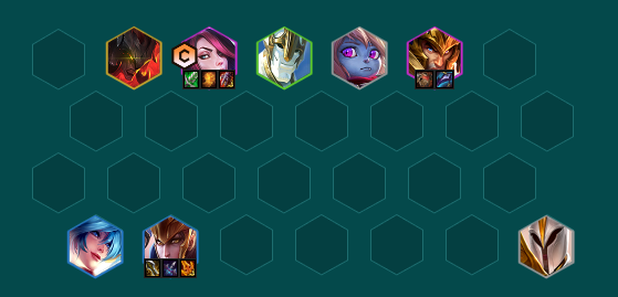 一般情况4-1拉7人口,然后大搜找齐7德玛和两星奎因,这时候看血量可以慢慢上八。如果经济差就4-2上7人口,搜牌差就只能7人口打到底,直到找到2星剑姬。一般情况5阶段上8人口找到剑魔和全员两星即可大成。
