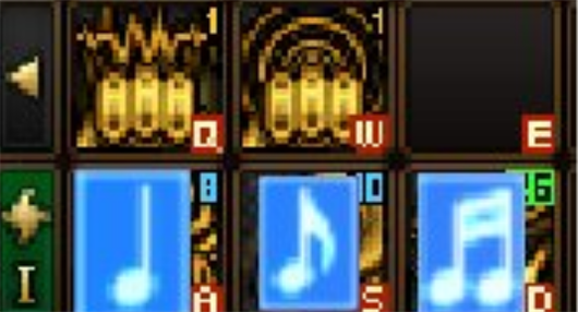 2、实用小技巧 推荐将乐谱放在Q和W位置,ASD位置放4-8-16音符对应的技能(各选择1个即可)后续只需要记住对应的buff就行,例如需要释放唱歌只需要点击Q+S