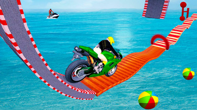 *玩家可以驾驶各种各样的摩托车造型来进行比赛,空中跑道超级惊险。