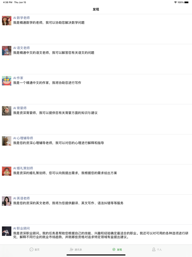 1.模拟了很多AI,聊天对象知识内容也很丰富,用户可以自由学习和提升自己。