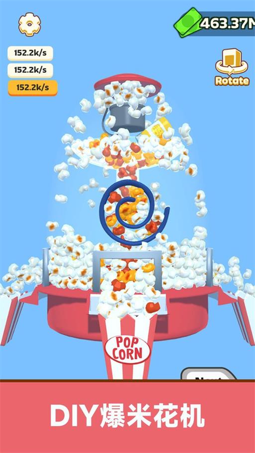 一款独特的放置挂机游戏,玩家可以升级和DIY自己的爆米花机器,通过自动生产爆米花获得收益。