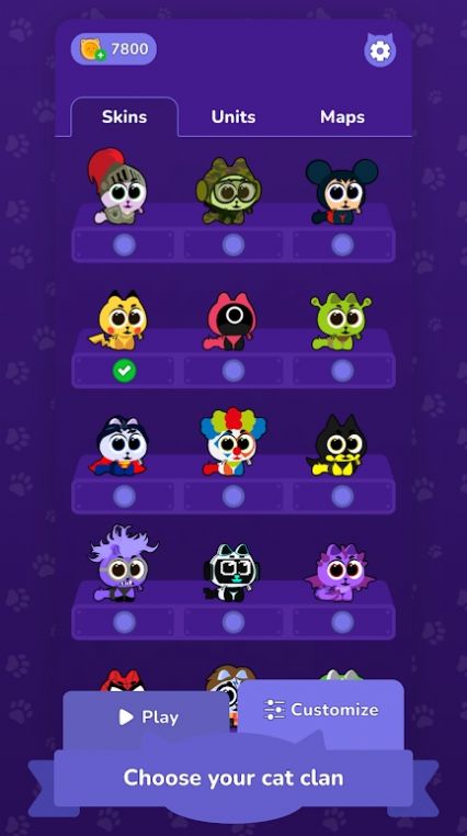 2.有很多款不同的人物角色,玩家可以自由的打造猫猫军队,让猫猫军队的实力变得更强。