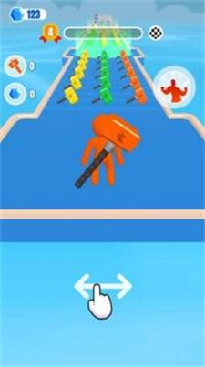 1.刺激挑战挑战无尽的赛道,控制角色背着巨大锤子奔跑,并战胜各种障碍物。